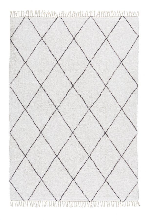 Tuftattu, pehmeä puuvillamatto, jossa hapsut. Koko 170×240 cm. Konepesu tai kemiallinen pesu, jos matto ei mahdu pesukoneeseen.