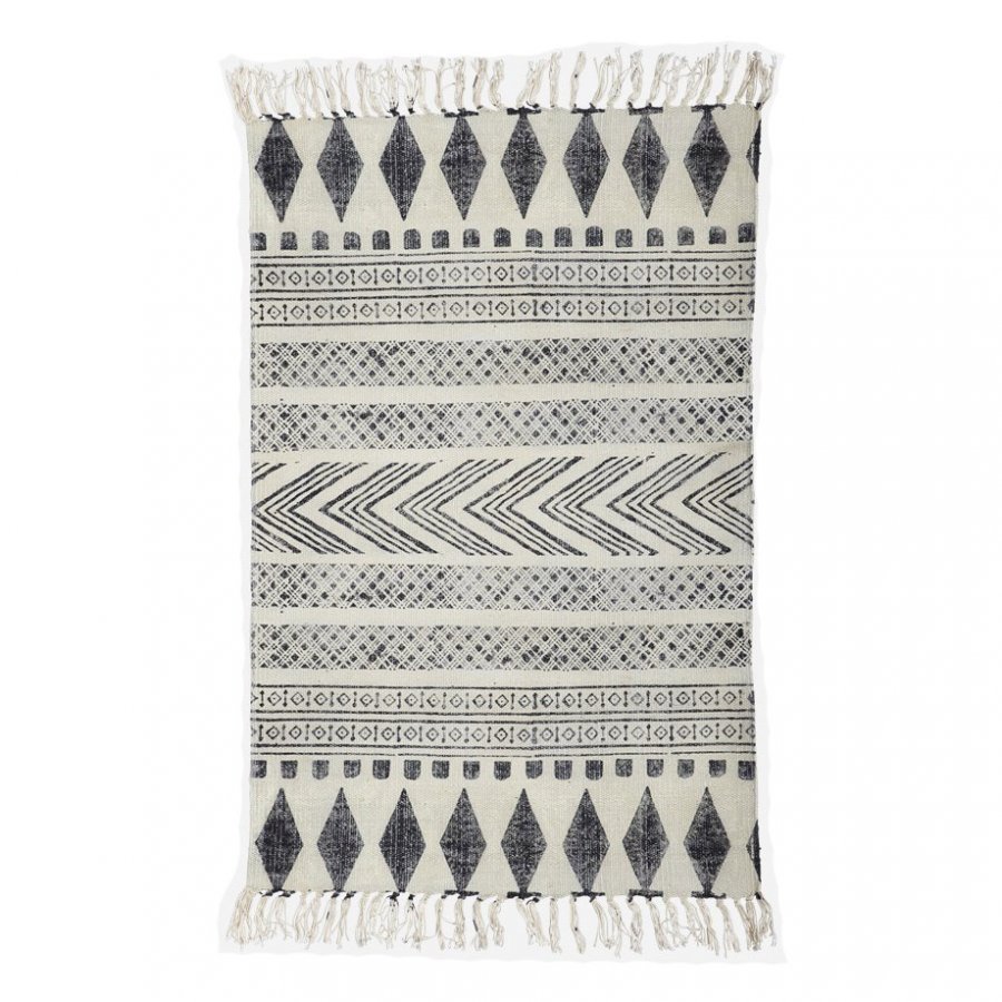 100% puuvillaa. Matto on käsintehty mikä voi vaikuttaa siihen, että maton kuvio ja koko saattaa vaihdella.