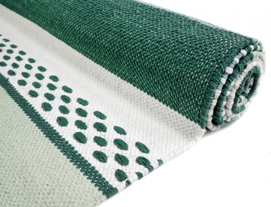 Vihreä Vallila Itäkylä -puuvillamatto kuvaa eteläpohjalaista kylää. Eri kokoja. Ostoksille!