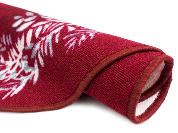 Punaisessa Vallila Tähkä -matossa on talvisia kasveja ja varpuja. Kuosi: Saara Kurkela. Eri kokoja. Ostoksille!